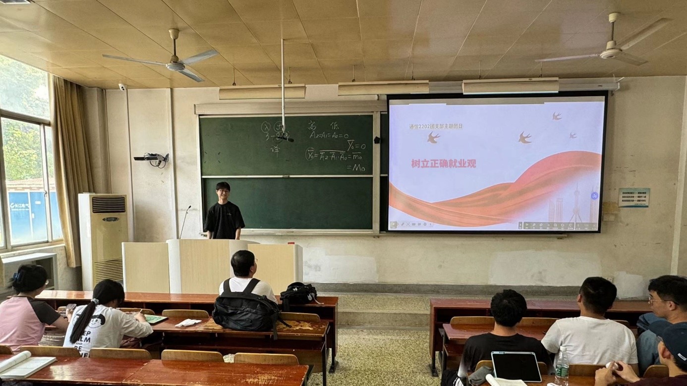 为了引导同学们树立正确就业观、择业观,努力实现自己的学业目标,做好职业生涯规划,通信2202团支部于6月19日在北院第三教学楼203开展“树立正确就业观”主题团日活动,该主题团日活动由王心怡同学主持,全体同学、辅导员樊梦吟参加。
