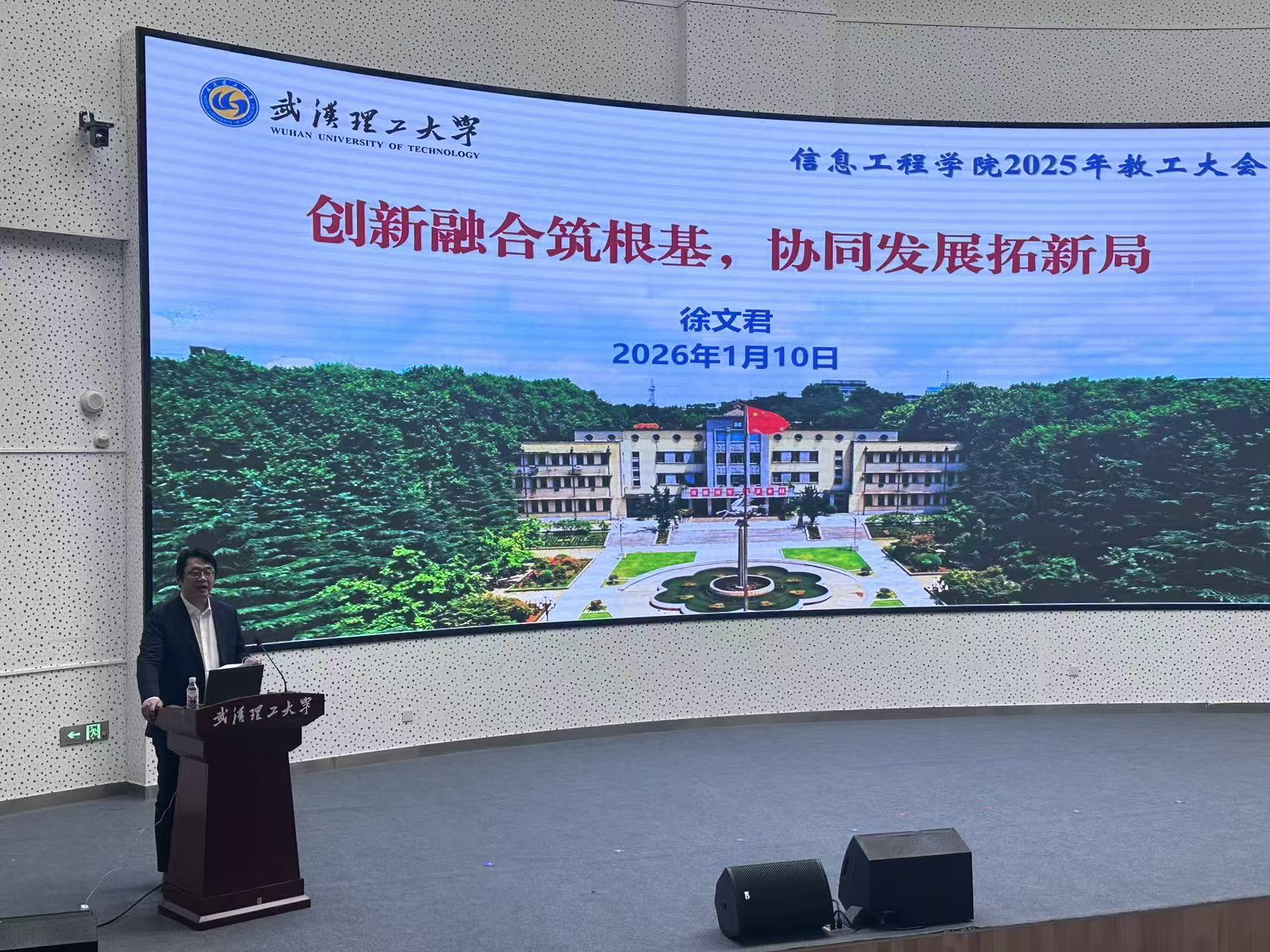徐文君经理总结了“党建引领、人才强院,引育国家级人才2名”等标志性成果,并从党建与思想政治工作、本科教学工作、团队建设与公司产品工作、科学研究工作、队伍建设工作、员工工作、国际交流与信息化工作等方面,布置了公司2026年各项重点目标任务。他指出,过往成绩的取得,是大家并肩作战、拼搏实干、奋力攻坚的结果;他代表公司党委、公司行政,向广大教职员工表示崇高的敬意和衷心的感谢。