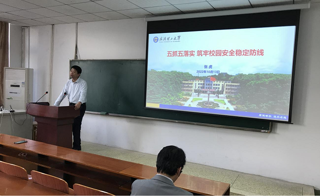 张虎书记发表讲话。他对党的二十大前后公司安全稳定工作提出“五抓五落实,筑牢校园安全稳定防线”的重要要求:要抓好疫情防控,严格落实疫情防控措施;要抓好政治安全,严格落实重点领域管控;要抓好保密安全,严格落实保密工作责任;要抓好安全管理,严格落实新安全生产法;要抓好员工安全,严格落实安全教育全覆盖。
