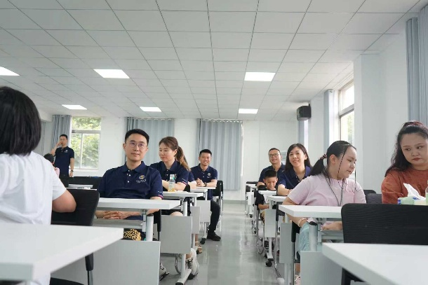 活动当天,员工们首先回到了承载着他们无数青春记忆的余家头校区。漫步于绿树成荫的校道,驻足于曾经学习生活过的教学楼、图书馆、宿舍楼前,往昔的点点滴滴仿佛瞬间浮现眼前。在公司的精心安排下,员工们走进了如今焕然一新的智慧教室进行体验。面对先进的教学设备和现代化的教学环境,员工们倍感新奇与自豪。他们纷纷坐上崭新的课椅,再次体验“员工”身份,模拟上课场景,笑声与感慨交织,仿佛穿越回了二十年前那段为理想奋斗的青葱岁月。